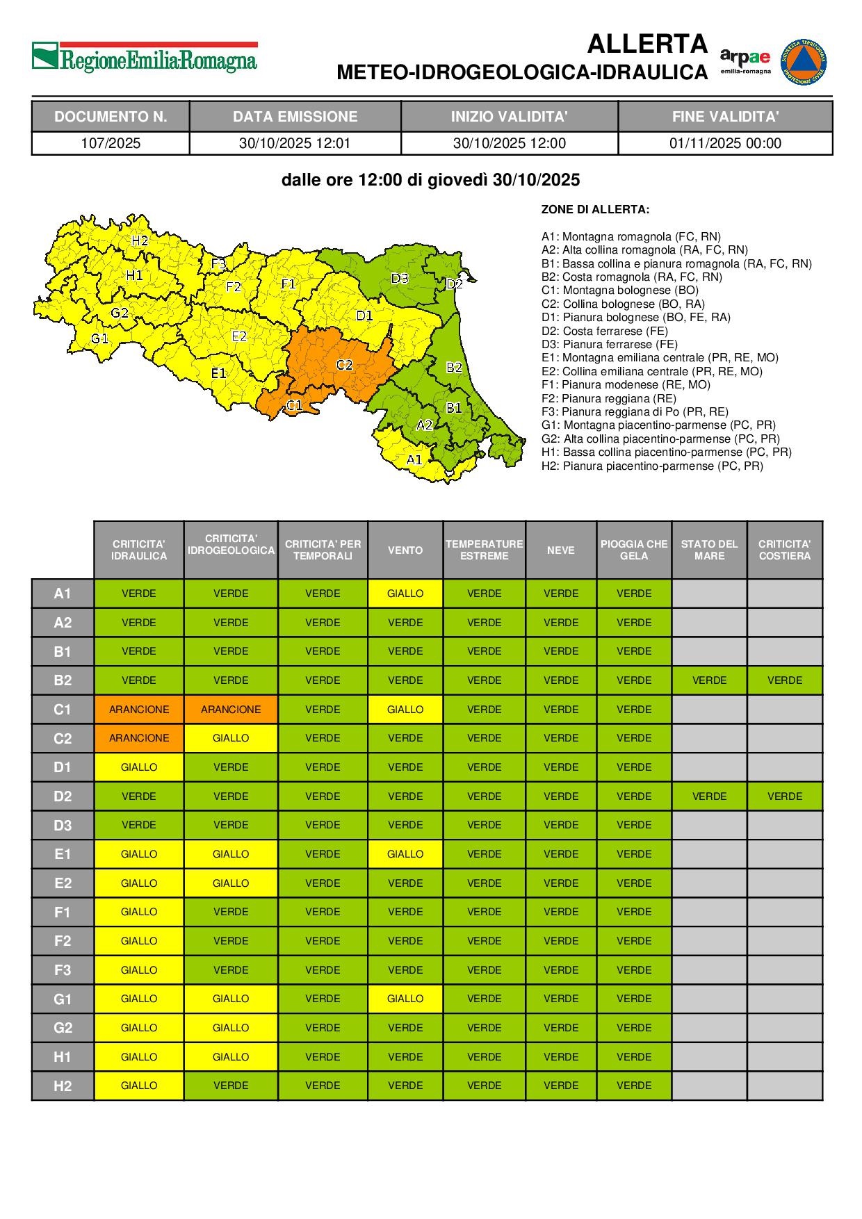 Nella seconda parte della giornata di giovedì 30 ottobre permangono condizioni di tempo instabile con precipitazioni che interesseranno principalmente le aree appenniniche centro-occidentali della regione con tendenza ad attenuazione dei fenomeni nella serata.