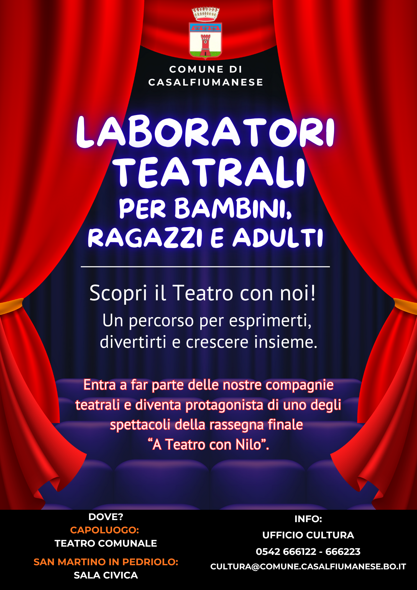 Ripartono da mercoledì 6 ottobre i laboratori teatrali/musicali, nel capolouogo e nella frazione di San Martino in Pedriolo!