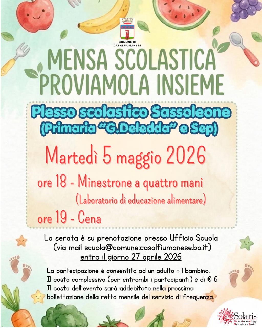 L'occasione sarà utile per presentare anche le nuove modalità di iscrizione al servizio mensa e prenotazione dei pasti a partire dall'anno educativo 2026/2027.