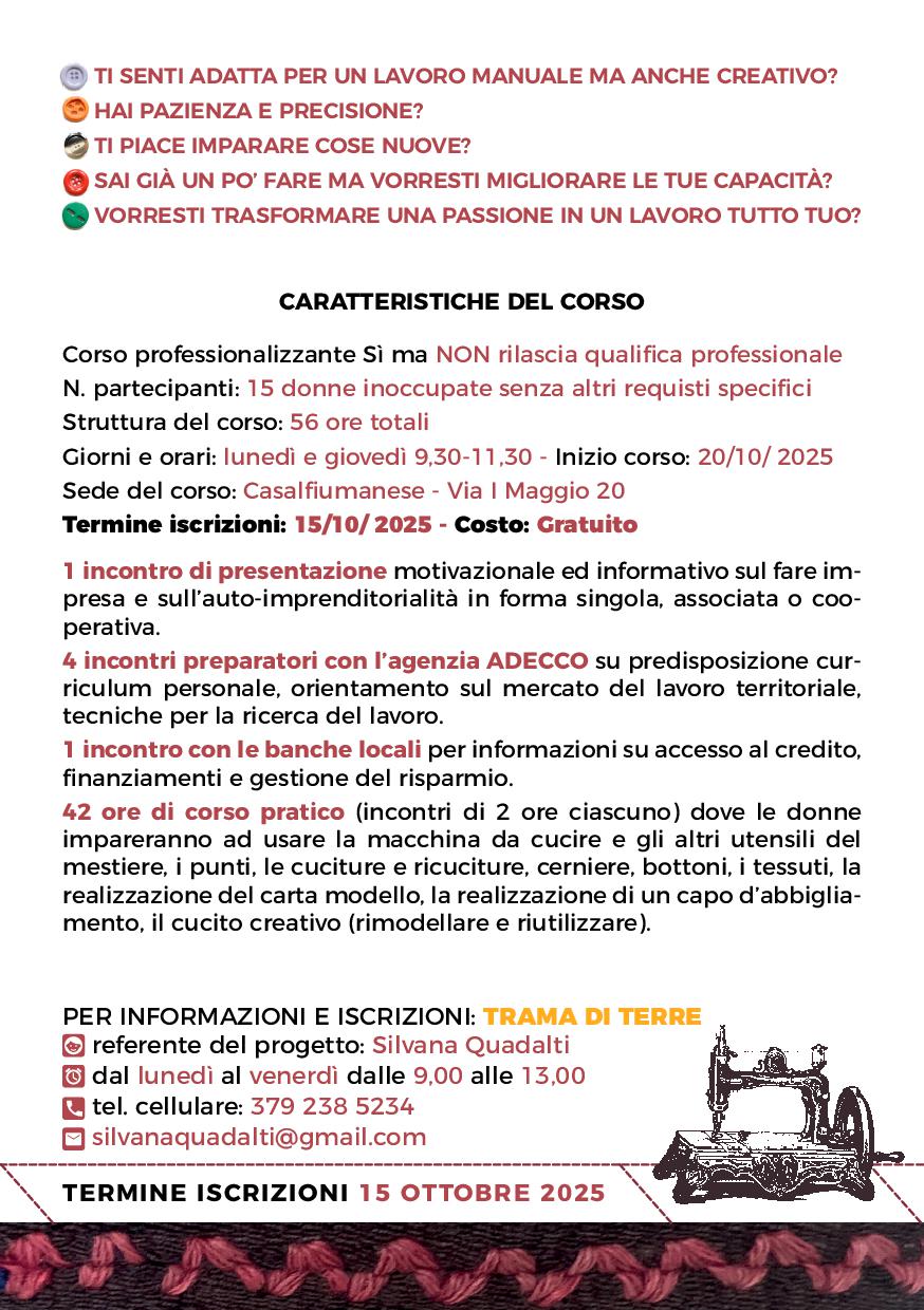 Il 𝟐𝟎 𝐨𝐭𝐭𝐨𝐛𝐫𝐞, con iscrizioni da perfezionare 𝐞𝐧𝐭𝐫𝐨 𝐢𝐥 𝟏𝟓, partirà il corso gratuito di sartoria '𝐃𝐨𝐧𝐧𝐞 𝐜𝐨𝐧 𝐥𝐚 𝐬𝐭𝐨𝐟𝐟𝐚' a Casalfiumanese.