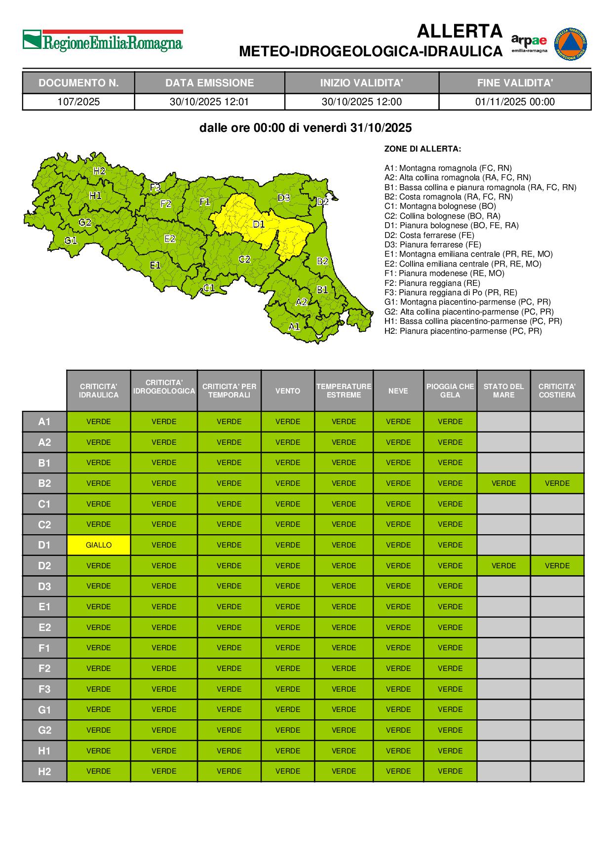 Nella giornata di venerdì 31 ottobre non sono previsti fenomeni meteorologici significativi ai fini dell’allertamento.