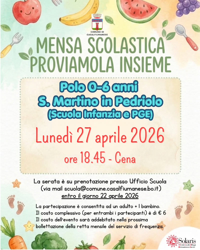 L'occasione sarà utile per presentare anche le nuove modalità di iscrizione al servizio mensa e prenotazione dei pasti a partire dall'anno educativo 2026/2027.