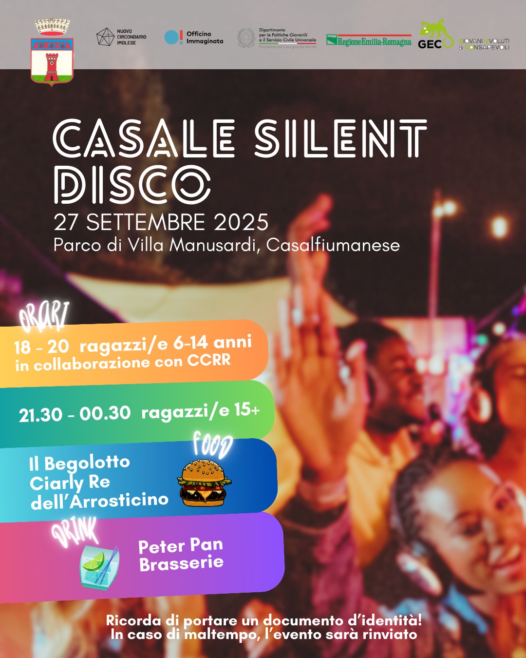 Sabato 27 settembre dalle ore 18, presso il parco della villa Manusardi , si terrà l’evento casalese del "Progetto Geco 13 – Giovani Evoluti e Consapevoli", promosso dal Nuovo Circondario Imolese con il finanziamento della Regione Emilia-Romagna e realizzato in collaborazione con Officina Immaginata nell’ambito della programmazione open up.