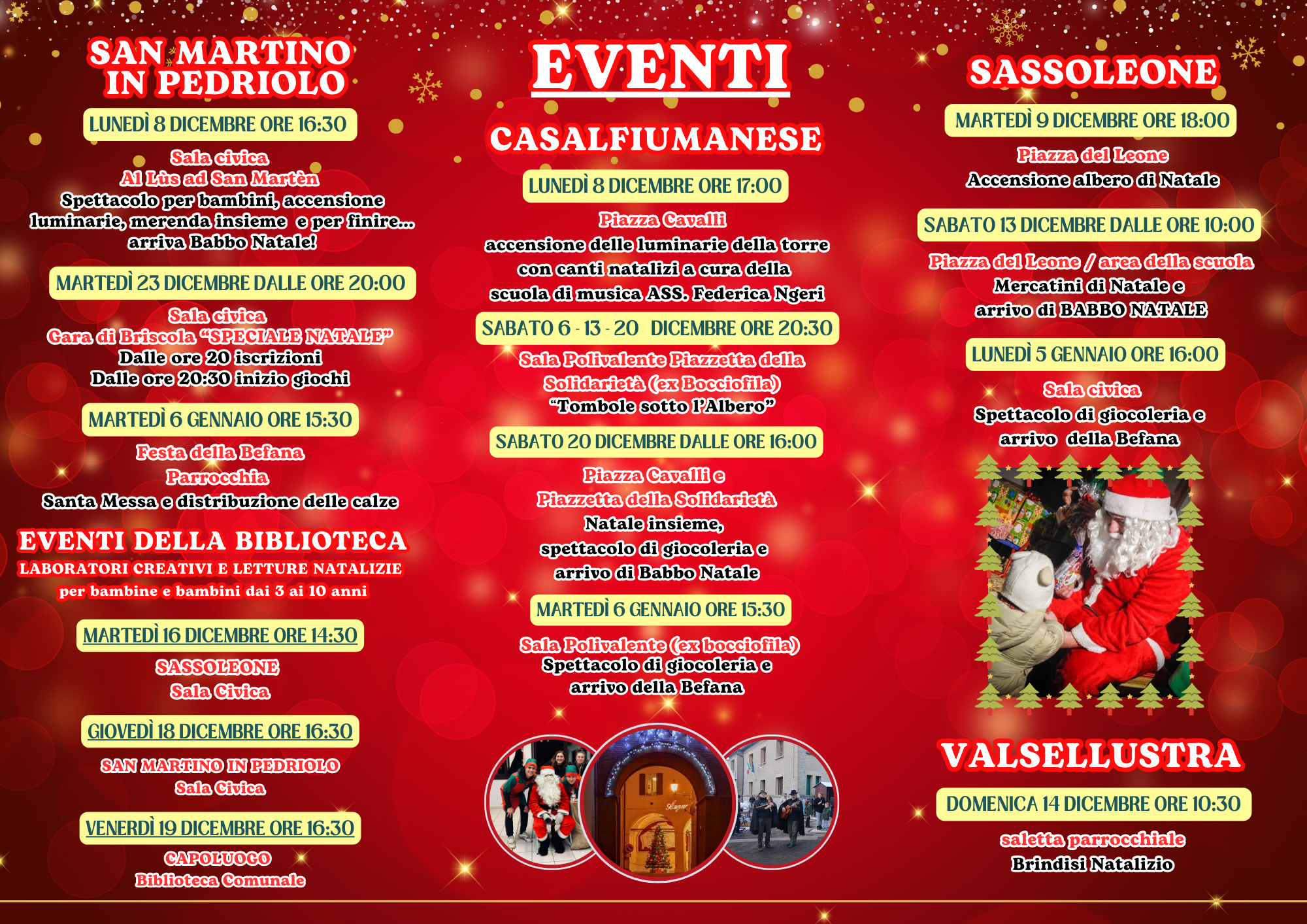 Il Comune di Casalfiumanese è lieto di annunciare la programmazione completa degli eventi natalizi che animeranno il capoluogo e tutte le frazioni durante le prossime settimane