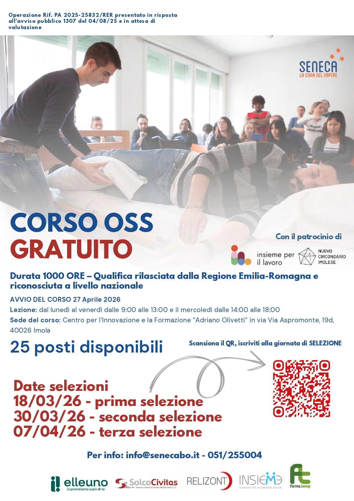 Rispondere alla carenza di personale qualificato nel settore assistenziale e offrire una concreta opportunità di inserimento lavorativo stabile: con questi obiettivi il Nuovo Circondario Imolese annuncia il sostegno al nuovo progetto formativo per Operatore Socio Sanitario (OSS).